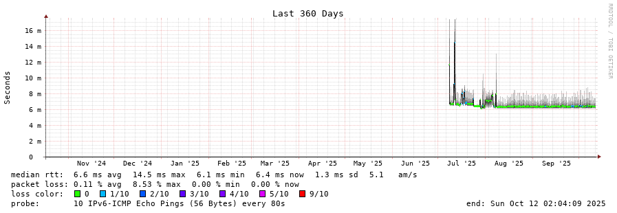 traceroute to ns1.gcorelabs.net (2a03:90c0:9990::1053), 30 hops max, 80 byte packets - Generated at 2025-10-12 01:00:01