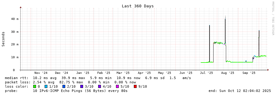 traceroute to www.akamai.com (2600:1408:c400:c::17cd:689b), 30 hops max, 80 byte packets - Generated at 2025-10-12 01:00:01