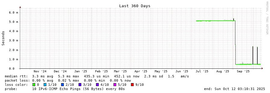 traceroute to 2620:119:53::53 (2620:119:53::53), 30 hops max, 80 byte packets - Generated at 2025-10-12 01:00:01