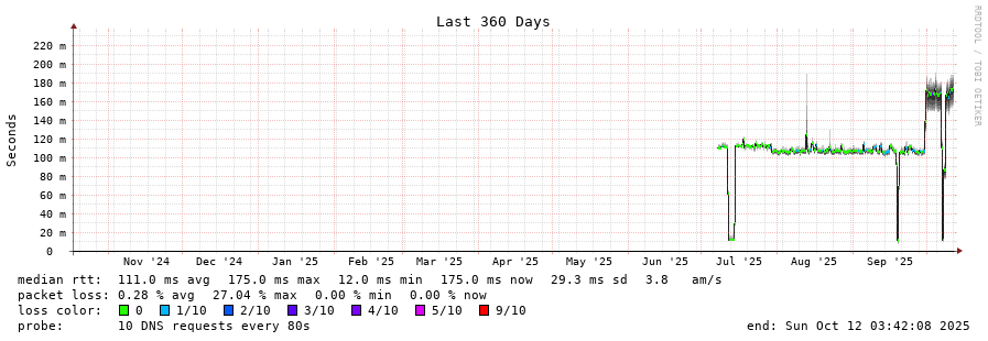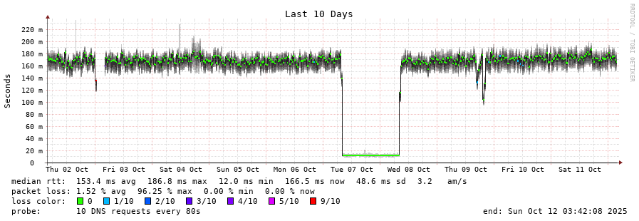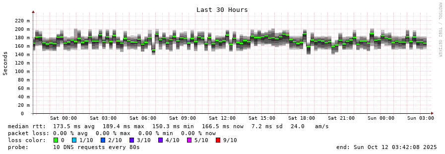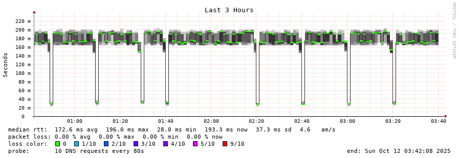 traceroute to 2001:7fe::53 (2001:7fe::53), 30 hops max, 80 byte packets - Generated at 2025-10-12 03:30:02