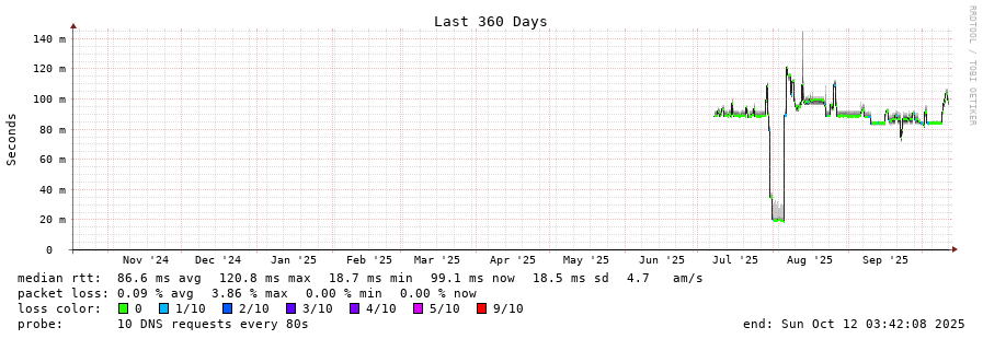 traceroute to 2001:7fd::1 (2001:7fd::1), 30 hops max, 80 byte packets - Generated at 2025-10-12 03:30:02