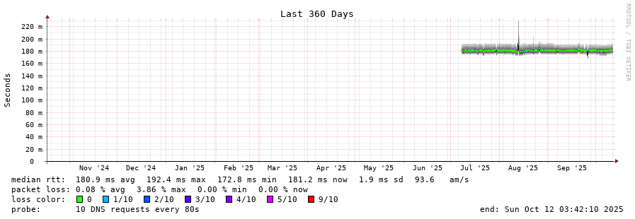 traceroute to 2001:dc3::35 (2001:dc3::35), 30 hops max, 80 byte packets - Generated at 2025-10-12 03:30:02