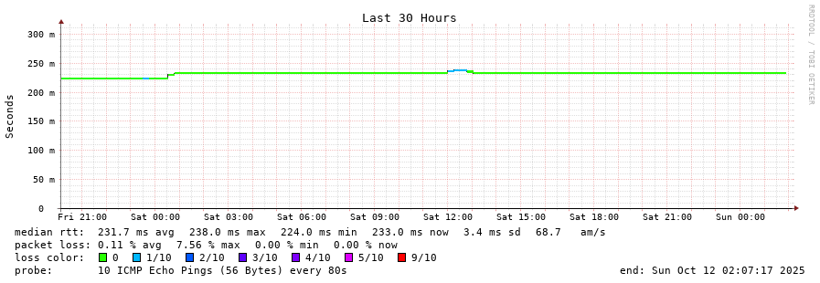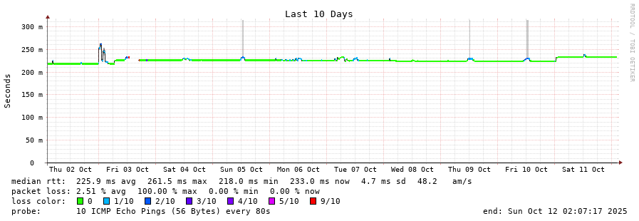 14 > 27.110.139.102 (27.110.139.102) [AS9299] 233.307ms 233.256ms 233.360ms