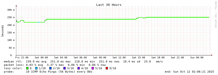 traceroute to 192.189.54.33 (192.189.54.33), 30 hops max, 60 byte packets - Generated at 2025-10-12 00:30:02