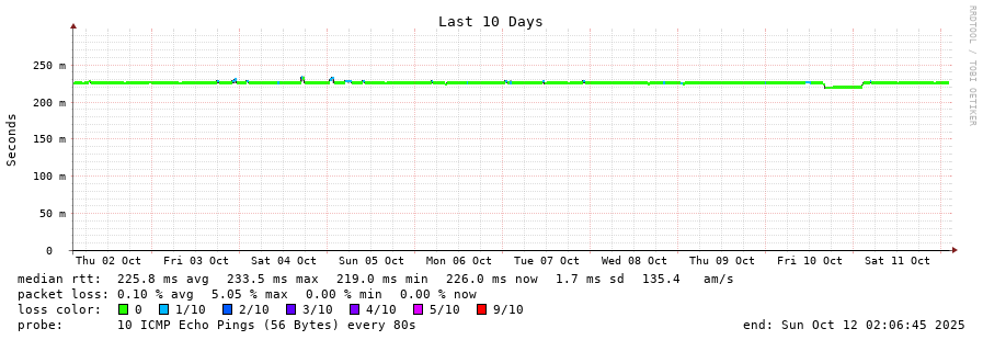 10 > wtsc3a057.netvigator.com (218.102.40.57) [AS4760] 226.043ms 225.992ms 226.038ms