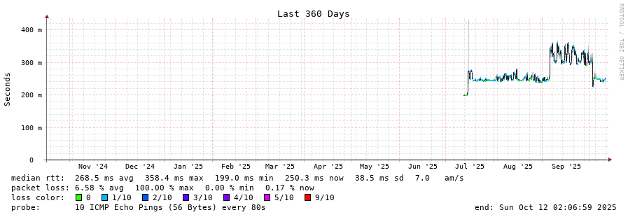 6 > 212.133.4.74 (212.133.4.74) [AS3356] 244.294ms 244.201ms 244.446ms