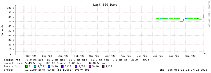 8 > 62.133.48.1 (62.133.48.1) [AS201838] 75.307ms 75.091ms 75.283ms