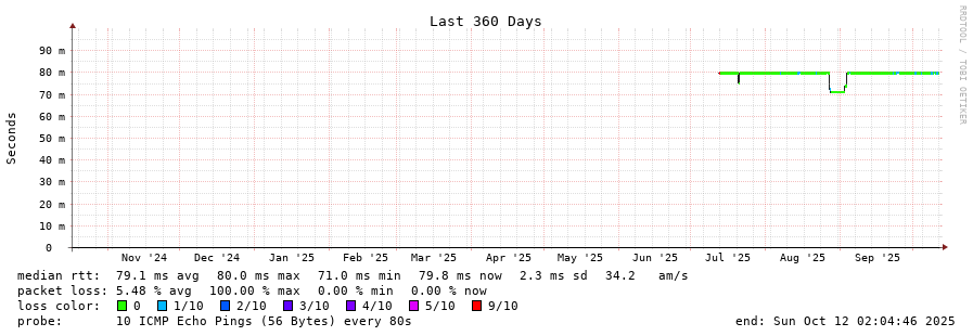 traceroute to 80.67.168.22 (80.67.168.22), 30 hops max, 60 byte packets - Generated at 2025-10-12 00:45:01