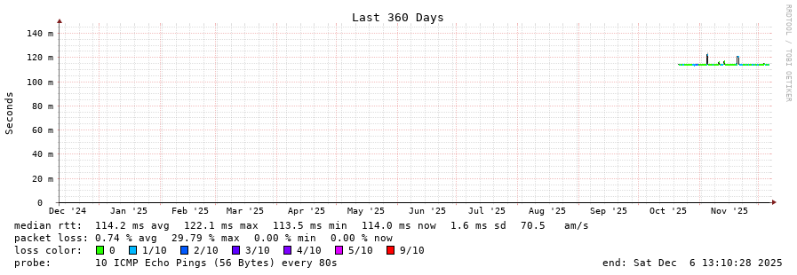 traceroute to 141.85.160.26 (141.85.160.26), 30 hops max, 60 byte packets - Generated at 2025-12-06 13:00:01