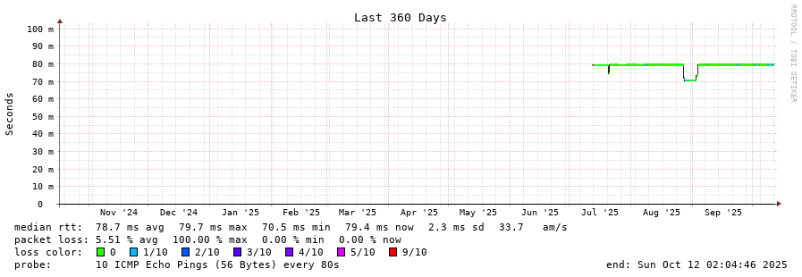 11 > hu0-0-1-1.frpar-th2-n55h2.as29075.net (185.18.172.107) [AS29075] 79.792ms 79.805ms 79.706ms