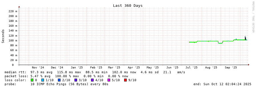 traceroute to 185.125.25.57 (185.125.25.57), 30 hops max, 60 byte packets - Generated at 2025-10-12 00:30:02