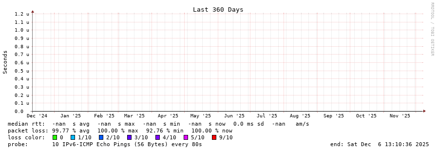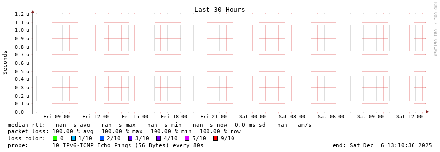 traceroute to 2001:67c:1e0:0:c225:e9ff:fea8:6a0a (2001:67c:1e0:0:c225:e9ff:fea8:6a0a), 30 hops max, 80 byte packets - Generated at 2025-12-06 13:00:01