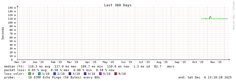 traceroute to 85.114.46.237 (85.114.46.237), 30 hops max, 60 byte packets - Generated at 2025-12-06 13:00:01