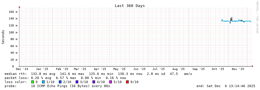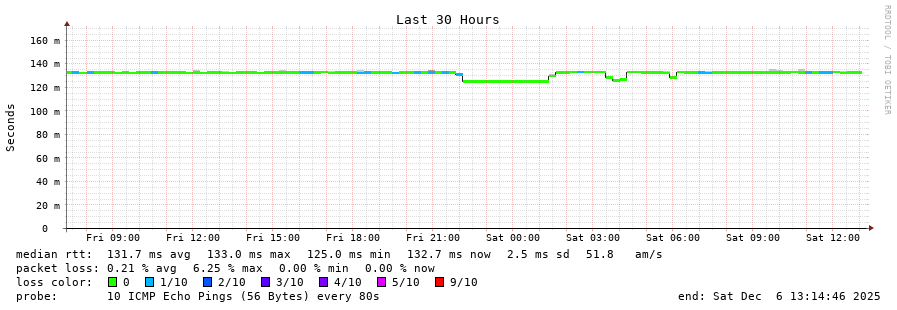 12 > 85.120.220.125 (85.120.220.125) [AS48141] 132.700ms 132.559ms 132.505ms