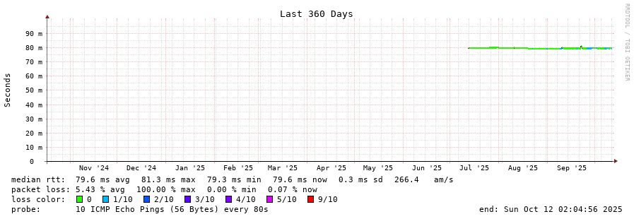 8 > nlrtm1-rt001i.i3d.net (109.200.218.228) [AS49544] 79.937ms 80.088ms 80.146ms