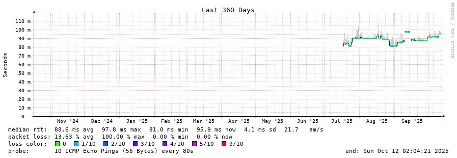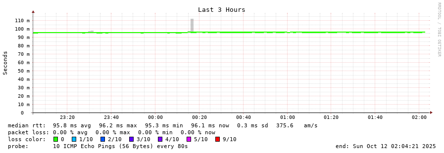 12 > 80.84.23.97 (80.84.23.97) [AS6774] 86.914ms 86.807ms 87.013ms