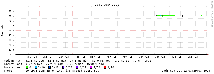 12 > 2001:41d0:20a:600:: (2001:41d0:20a:600::) [AS16276] 84.638ms 83.423ms 83.435ms