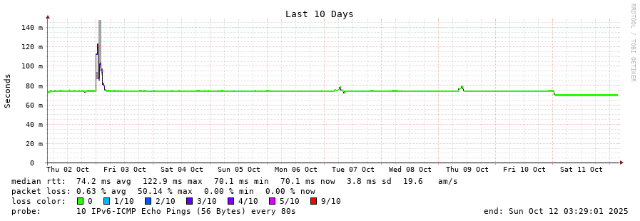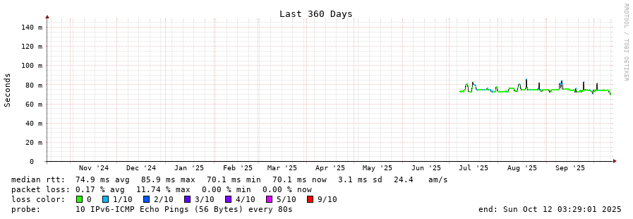 traceroute to 2604:2dc0:202:200::1f9 (2604:2dc0:202:200::1f9), 30 hops max, 80 byte packets - Generated at 2025-10-12 03:15:01