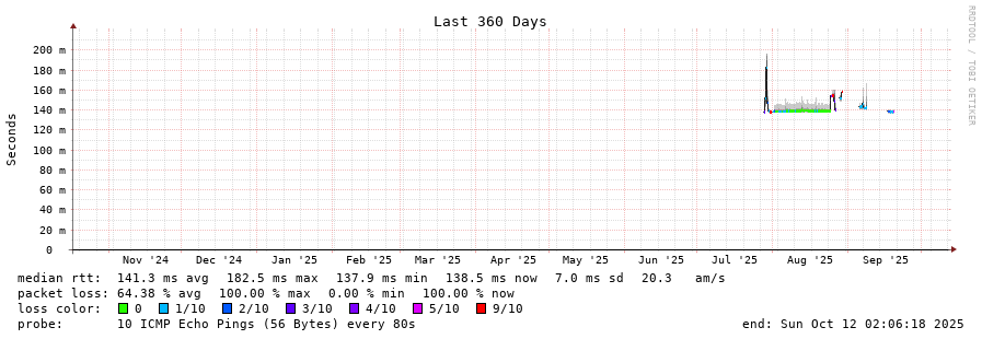 traceroute to 187.0.64.1 (187.0.64.1), 30 hops max, 60 byte packets - Generated at 2025-10-12 00:45:01