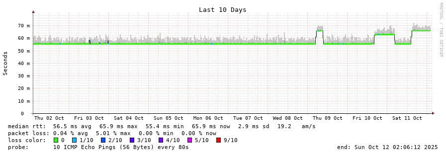 9 > 190.52.127.233 (190.52.127.233) [AS262182] 65.898ms 65.891ms 65.954ms