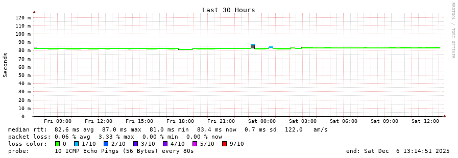 12 > 199.100.8.58 (199.100.8.58) [AS174] 83.141ms 83.074ms 83.105ms