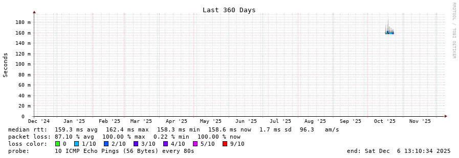 traceroute to 181.192.57.59 (181.192.57.59), 30 hops max, 60 byte packets - Generated at 2025-12-06 13:00:01