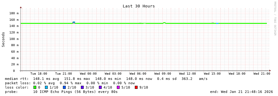 traceroute to 190.105.0.2 (190.105.0.2), 30 hops max, 60 byte packets - Generated at 2026-01-21 21:30:01