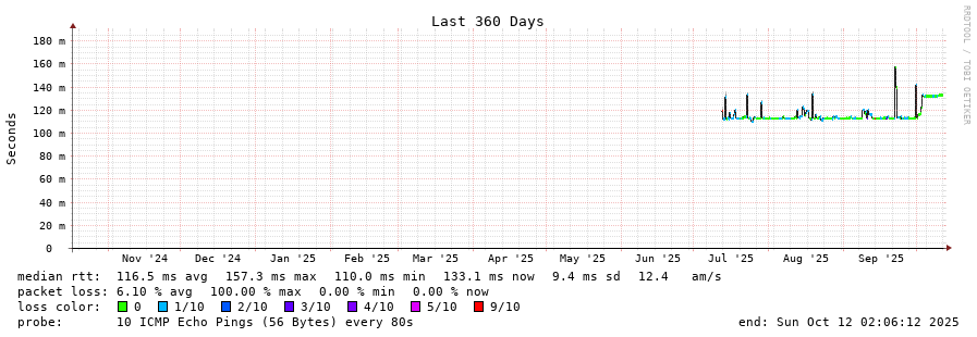 traceroute to 190.108.82.5 (190.108.82.5), 30 hops max, 60 byte packets - Generated at 2025-10-12 01:00:01