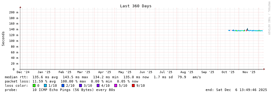 traceroute to 187.86.97.65 (187.86.97.65), 30 hops max, 60 byte packets - Generated at 2025-12-06 13:00:01