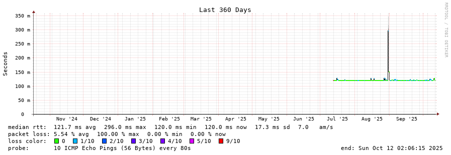 traceroute to 200.87.100.1 (200.87.100.1), 30 hops max, 60 byte packets - Generated at 2025-10-12 01:00:01