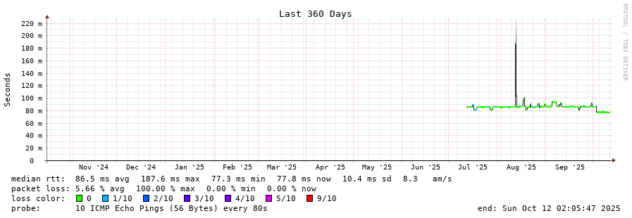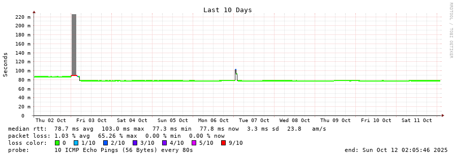 traceroute to 96.127.100.10 (96.127.100.10), 30 hops max, 60 byte packets - Generated at 2025-10-12 00:15:02