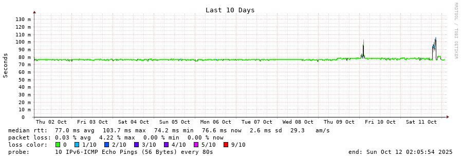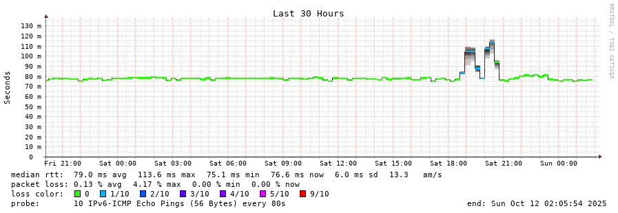traceroute to 2001:49f0:d0b0:6::2 (2001:49f0:d0b0:6::2), 30 hops max, 80 byte packets - Generated at 2025-10-12 00:15:02
