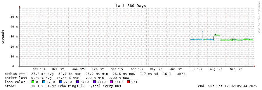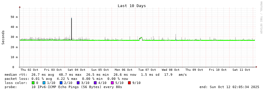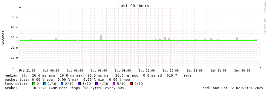 traceroute to 2602:feda:b8e:10::1 (2602:feda:b8e:10::1), 30 hops max, 80 byte packets - Generated at 2025-10-12 00:30:02