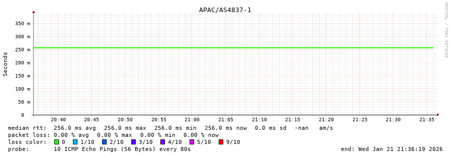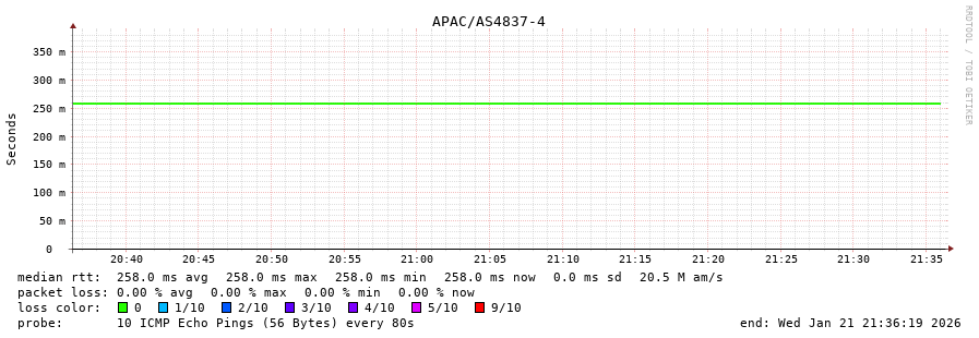 43. Median RTT 0.257 seconds